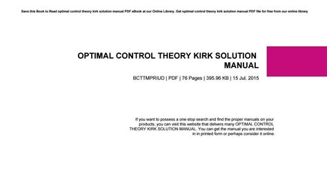 Read Online optimal control theory kirk solution manual PDF